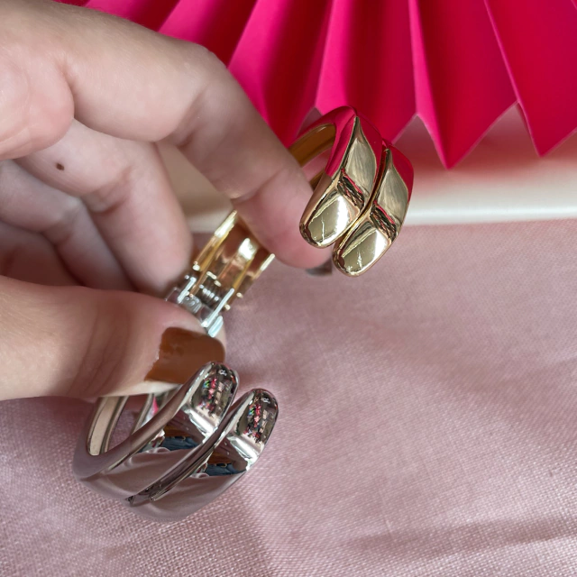 Bracelete em dois banhos, metade prata e metade dourado, com duas voltas iguais lisas