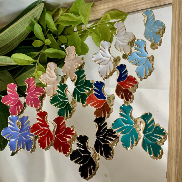 Brinco esmaltado estilo meia pétala, liso e trabalhado em riscas estilo martelado