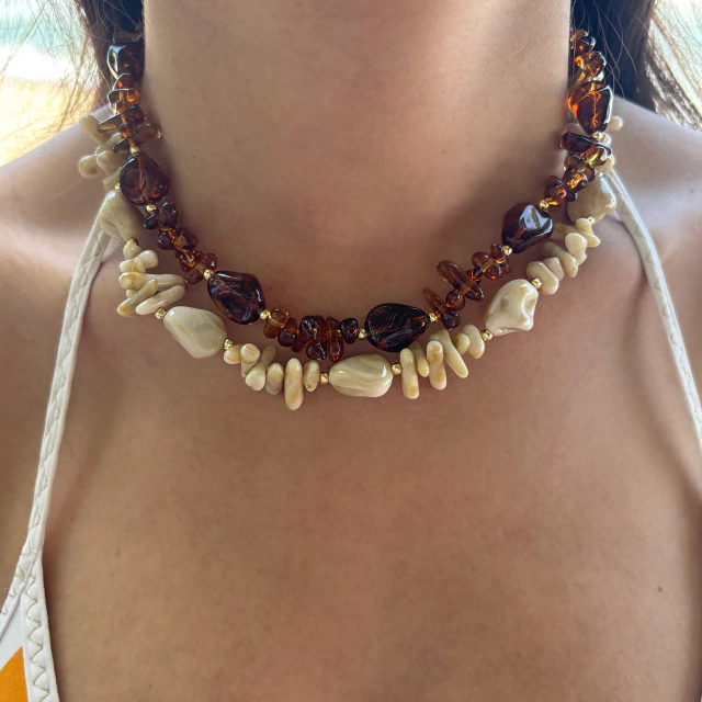 Colar em pedras mescladas, com tamanhos variados