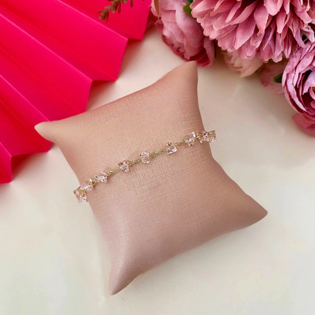 Pulseira com pedrinhas em formatos diferentes, delicada e cheia de charme